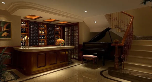 因为空间封闭或半封闭的原因,地下室光线比较暗,采光条件差。所以必须装上一些灯具来作为照明来使用,一定要挑一些照明效果比较好的灯具,再配上比较素色的家具就更好了。此外,还可以通过布置玻璃进行光线折射,以此来增加地下室的照明效果。